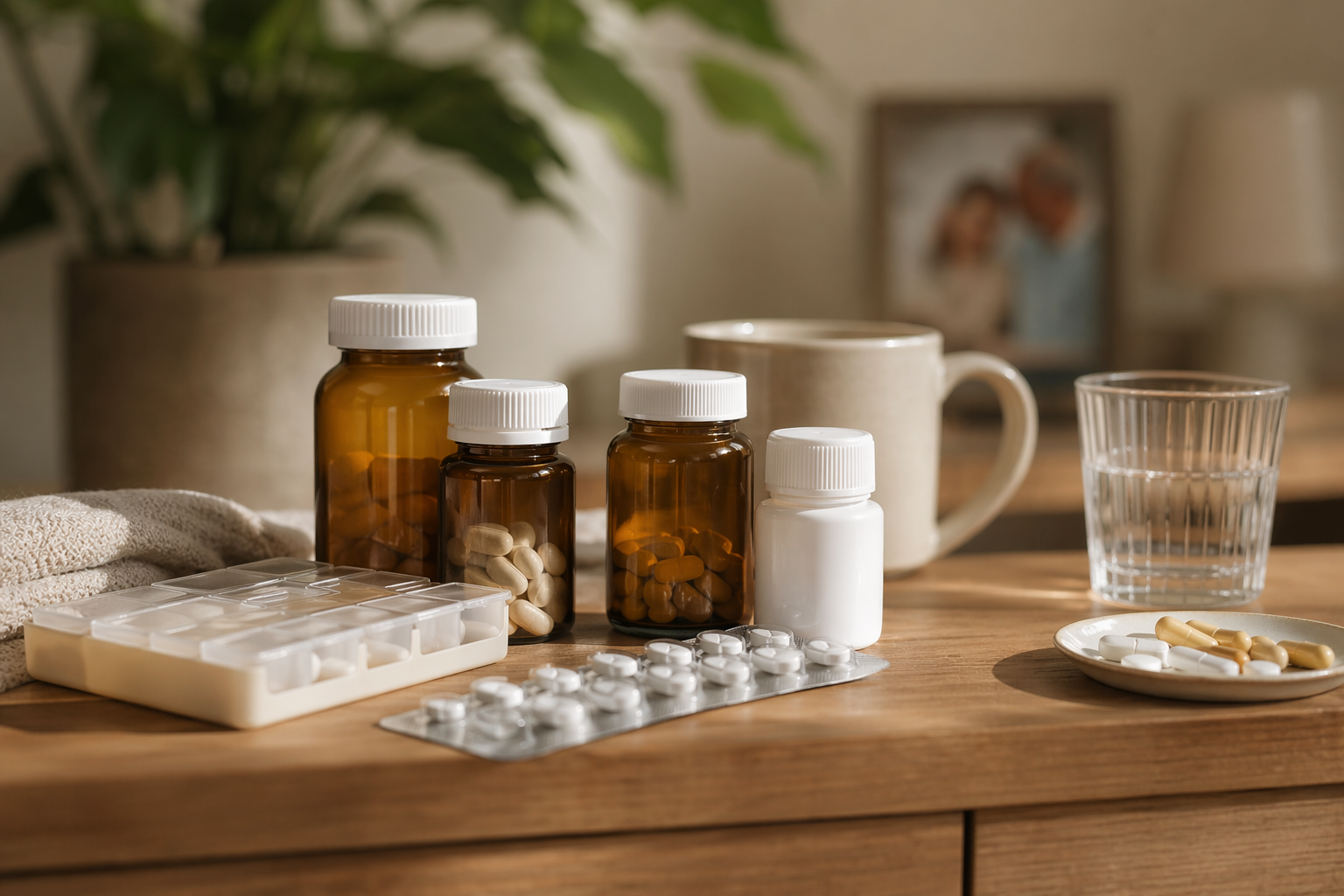 Medication tracking, reminder systems, and coordinated follow-up around prescription routines.